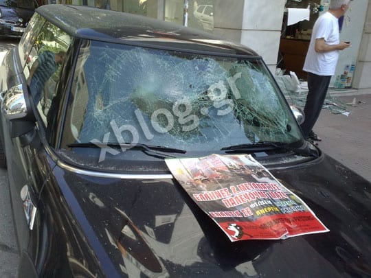 Βρισκόμουν κοντά στην περιοχή, οπότε ακούγοντας τη φασαρία κινήθηκα προς τα εκεί για να δω τι είχε συμβεί και τράβηξα μερικές φωτογραφίες. Συνομίλησα με τον κάτοχο του μπλε σπασμένου αυτοκινήτου που βλέπετε παρακάτω, ο οποίος μου είπε ότι μόλις είχε παρκάρει όταν οι άγνωστοι κινήθηκαν απειλητικά προς το όχημά του. Στην προσπάθειά του μάλιστα να αποτρέψει την καταστροφή έφαγε και μερικές μπουνιές από τους αγνώστους.