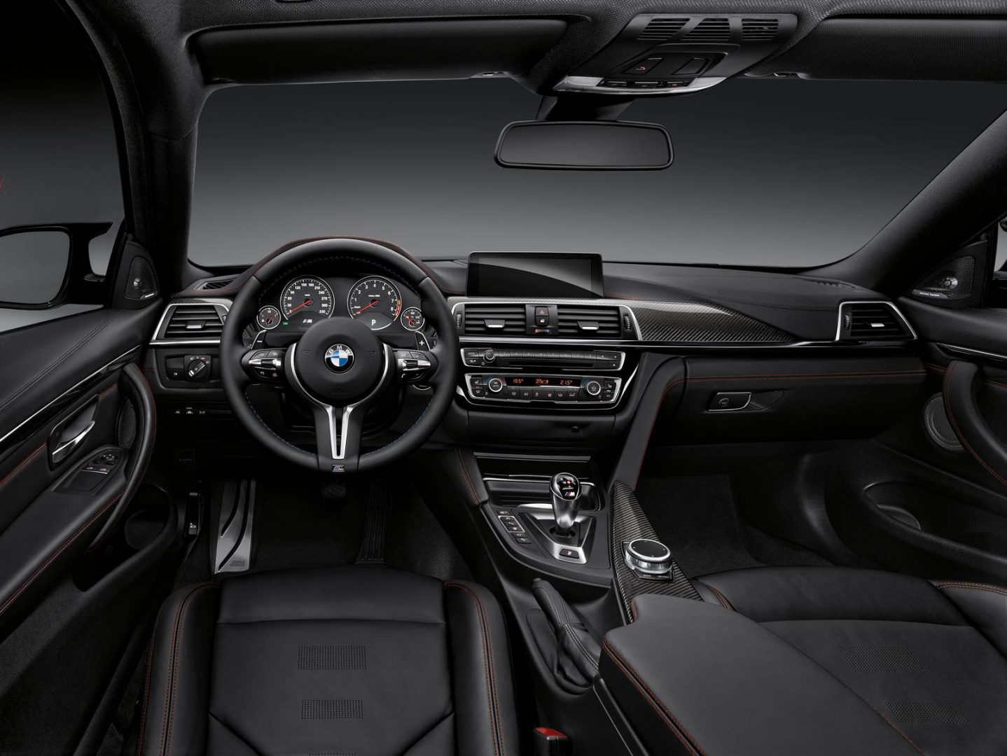 Στο εσωτερικό υπάρχουν περισσότερα τμήματα “ντυμένα” με ανθρακόνημα και την παράσταση κλέβουν τα φωτιζόμενα logos «Μ4» που έχουν ραφτεί στις πλάτες των καθισμάτων. Όσο για το σύστημα πλοήγησης, έχει προστεθεί το Professional και στις βασικές εκδόσεις.