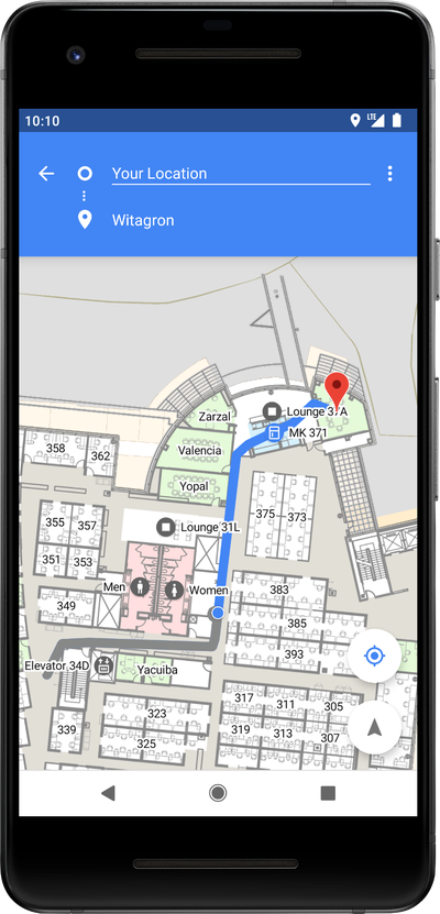 - Wi-Fi RTT (round-trip-time). Οι προγραμματιστές θα μπορούν να ξέρουν πόσο μακριά βρίσκεται η συσκευή του χρήστη από ένα router με ακρίβεια 1-2m. Αυτό είναι χρήσιμο, για παράδειγμα, για να εμφανίζει την τοποθεσία του χρήστη μέσα σε ένα πολυκατάστημα (βλ. screenshot στη συνέχεια).