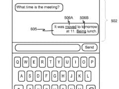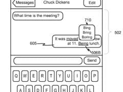 Ο αμερικάνικος κολοσσός πατένταρε ένα λογισμικό με σκοπό να βελτιώσει την αυτόματη διόρθωση του πληκτρολογίου της. Αυτό το λογισμικό ουσιαστικά τονίζει με μπλε χρώμα τις λέξεις που έχουν διορθωθεί από το auto correct έτσι ώστε άμα το μήνυμα δεν βγάζει νόημα, ο παραλήπτης να πατάει στην ‘άκυρη’ λέξη και να βλέπει τις προτεινόμενες λέξεις. Μπορείτε να δείτε πως θα εμφανίζεται στις εικόνες που συμπεριέλαβε η Apple για τη πατέντα: