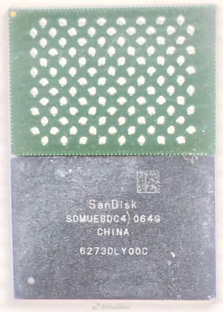 Η ίδια πηγή αναφέρει ότι τα chips των 64 GB θα τα προμηθεύει η SanDisk (θυγατρική της Western Digital), τα chips των 256 GB η SanDisk και η Toshiba, και τα chips των 512 GB θα τα προσφέρουν οι Samsung και Hynix. Παρακάτω μπορείτε να δείτε τη πρώτη φωτογραφία ενός chip 64 GB της SanDisk για το iPhone 8.