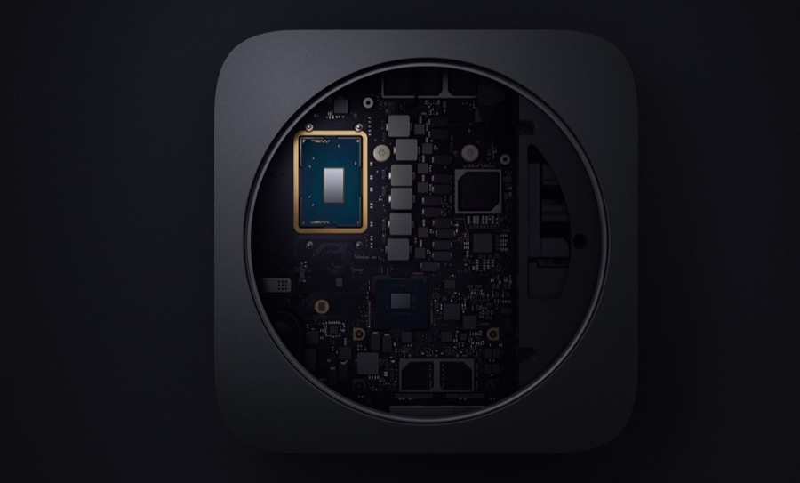Το Mac mini του 2018 θυμίζει σχεδιαστικά τα προηγούμενα μοντέλα (η εμφάνιση δεν έχει ανανεωθεί από το 2012) αλλά ανοίγοντας το καπάκι από κάτω βλέπουμε ένα εντελώς νέο εσωτερικό. Καταρχάς έχει αφαιρεθεί ο σκληρός δίσκος, αφού όλα τα μοντέλα διαθέτουν flash μνήμη (SSD) η οποία φτάνει τα 2TB. Επιπλέον υπάρχει τετραπύρηνος ή εξαπύρηνος επεξεργαστής της Intel (πλέον το βασικό μοντέλο έχει Core i3), έως 64GB μνήμη RAM τύπου DDR4 στα 2666MHz, το chip T2 της Apple για αυξημένη ασφάλεια και αναβαθμισμένο σύστημα ψύξης.