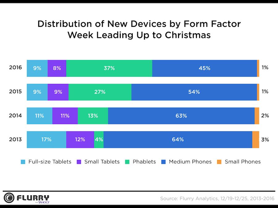 Όσο για τους τύπους των συσκευών, τα tablets σημείωσαν μια μικρή μείωση σε σχέση με πέρσι ενώ τα phablets αυξήθηκαν πολύ (τα smartphones με οθόνες από 5- έως 6.9- ίντσες), “τρώγοντας” ποσοστό από τα μικρότερα smartphones που είναι ξεκάθαρο ότι δεν τα προτιμάει πολύς κόσμος πλέον.