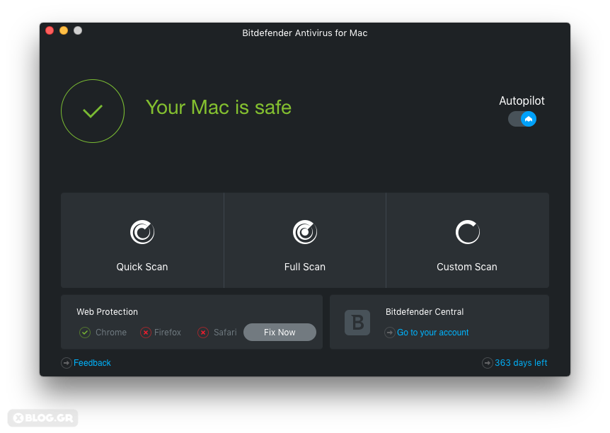 Όμως αφήσαμε το καλύτερο για το τέλος. Το Bitdefender διαθέτει τη λειτουργία “αυτόματου πιλότου” Autopilot την οποία ενεργοποιείτε μια φορά και μετά δεν ανοίγετε ξανά το Bitdefender. Το Autopilot, που είναι διαθέσιμο τόσο για τα Windows όοσ και για τα Mac, ψάχνει αυτόματα για ιούς και προσαρμόζει την παρακολούθηση για κακόβουλο λογισμικό ανάλογα τις απαιτήσεις του συστήματος και τις απειλές που συναντάτε.