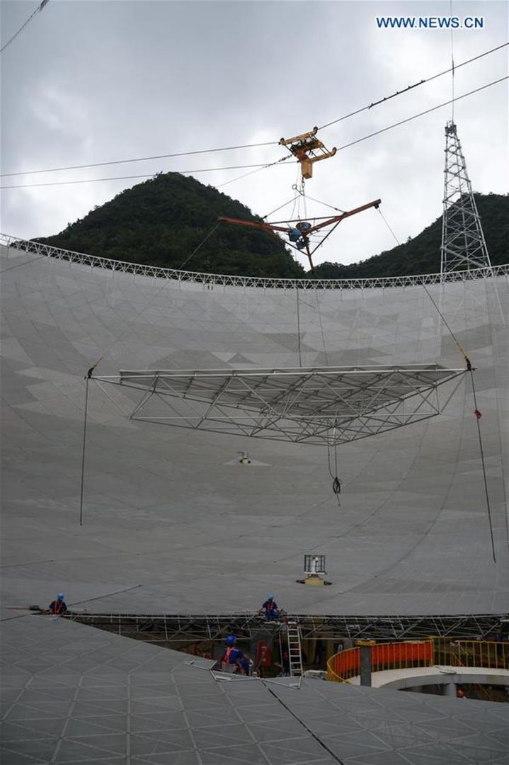 Η Κίνα ολοκλήρωσε την κατασκευή του μεγαλύτερου ραδιοτηλεσκοπίου στον κόσμο, σύμφωνα με τα κρατικά μέσα μαζικής ενημέρωσης. Το τελευταίο από τα 4,450 τριγωνικά πάνελ του τηλεσκοπίου τοποθετήθηκε το πρωί της Κυριακής 3 Ιουλίου, και τον Σεπτέμβριο αναμένεται να τεθεί σε λειτουργία. Το Five Hundred Meter Aperture Spherical Telescope (ή απλά FAST) έχει μέγεθος 30 γηπέδων ποδοσφαίρου και χρειάστηκαν πάνω πέντε χρόνια για την ολοκλήρωσή του. Το κράτος της Κίνας έχει επενδύσει $180 εκατομμύρια σε αυτό.