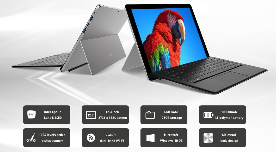 Το τρίτο προϊόν που παρουσίασε η CHUWI είναι το tablet Hi9 με αφαιρούμενο πληκτρολόγιο. Τα χαρακτηριστικά του περιλαμβάνουν:
