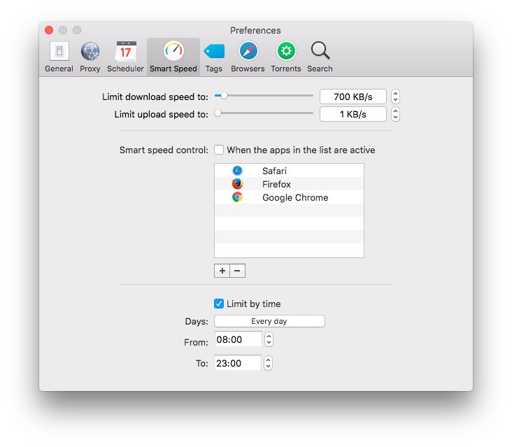 - Έλεγχος της ταχύτητας. Ελέγξετε και θέστε όρια στη ταχύτητα λήψης αρχείων για να μην έχετε κακή σύνδεση στο Internet όταν ο υπολογιστής σας κατεβάζει με ταχύτητα τα αρχεία.