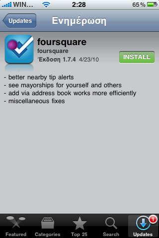 Από χθες αργά το βράδυ το Foursquare application για το iPhone ανανεώθηκε, με διάφορα πραγματάκια πλέον να λειτουργούν ακόμα καλύτερα, για μία καλύτερη «foursquare check-in» εμπειρία για όλους!