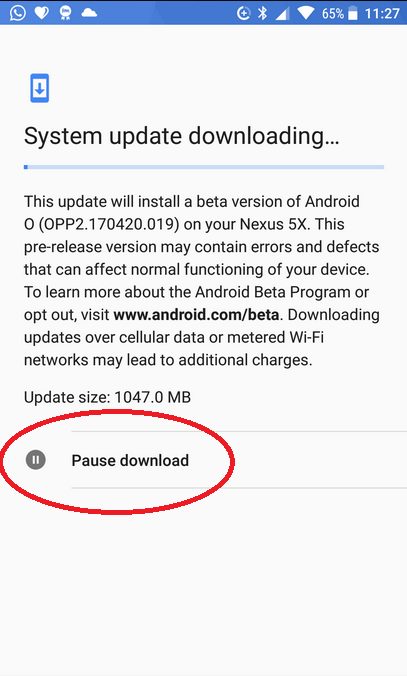 Η Google ανακοίνωσε ότι πρόσθεσε τη λειτουργία παύσης της λήψης μιας ενημέρωσης στο Android O. Αυτό είναι ένα από τα διάφορα νέα χαρακτηριστικά του Android που η Google ανέπτυξε για να βελτιώσει την εμπειρία χρήσης του λειτουργικού συστήματός της – η εταιρία διέγραψε επίσης τις μισές κακογραμμένες εφαρμογές, ανέπτυξε μια νέα έκδοση του Android αποκλειστικά για αδύναμα smartphones, ανέπτυξε μια νέα τεχνολογία που σκανάρει αντικείμενα σε φωτογραφίες και εμφανίζει σχετικές πληροφορίες και θα προσφέρει καλύτερα εργαλεία ανάπτυξης εφαρμογών για προγραμματιστές. Η δυνατότητα παύσης της λήψης μιας ενημέρωσης προστέθηκε στο Android O για να μπορούν οι χρήστες να παύουν την λήψη όταν τελειώνει η μπαταρία του κινητού τους, δεν έχουν σήμα στο κινητό ή πρέπει να αποσυνδεθούν από το WiFi δίκτυό τους, και ύστερα να συνεχίζουν τη λήψη από το σημείο που είχε σταματήσει. Θα εμφανίζεται τόσο στις μεγάλες ενημερώσεις λογισμικού όσο και στις μικρές και θα αποτελεί μέρος του Play Services, σύμφωνα με τη Google.