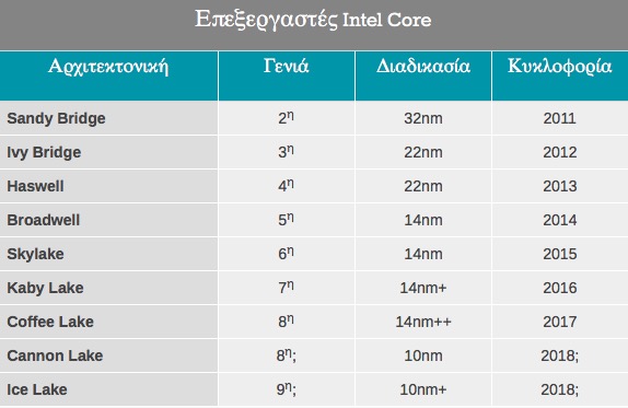 Για φέτος, η Ιntel αναμένεται να αποκαλύψει τους πρώτους επεξεργαστές Coffee Lake που θα κατασκευάζονται στα 14 nm++. Οι Coffee Lake και οι Cannon Lake λέγεται ότι θα ανήκουν στην όγδοη γενιά της οικογένειας επεξεργαστών Ιntel Core, αλλά αυτό δεν έχει ξεκαθαριστεί.