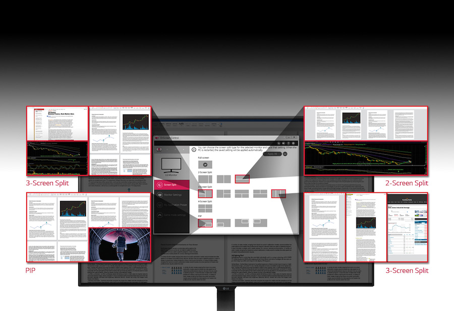 Για περισσότερη ευελιξία, το ενημερωμένο λογισμικό OnScreen Control 2.0 επιτρέπει στους χρήστες να επιλέγουν από μια μεγάλη ποικιλία σχεδίων για το στήσιμο, όπως για παράδειγμα την επιλογή ανάλυσης Split Screen που είναι κατάλληλη για ανάλυση δεδομένων. Επιπλέον, οι 4 τύποι Picture-in-Picture (PIP) παρέχουν τη δυνατότητα να ρυθμιστεί η διαφάνεια του παραθύρου για τέλεια εξατομίκευση βάσει των αναγκών τους, ενώ με το Flicker Safe μειώνεται η καταπόνηση των ματιών. Για παιχνίδια ή για παρακολούθηση ταινιών, ο σταθεροποιητής μαύρου χρώματος (Black Stabilizer) τους επιτρέπει να απολαμβάνουν περιεχόμενο υψηλής ποιότητας και να έχουν ορατότητα ακόμα και όταν οι σκηνές είναι πραγματικά σκοτεινές.