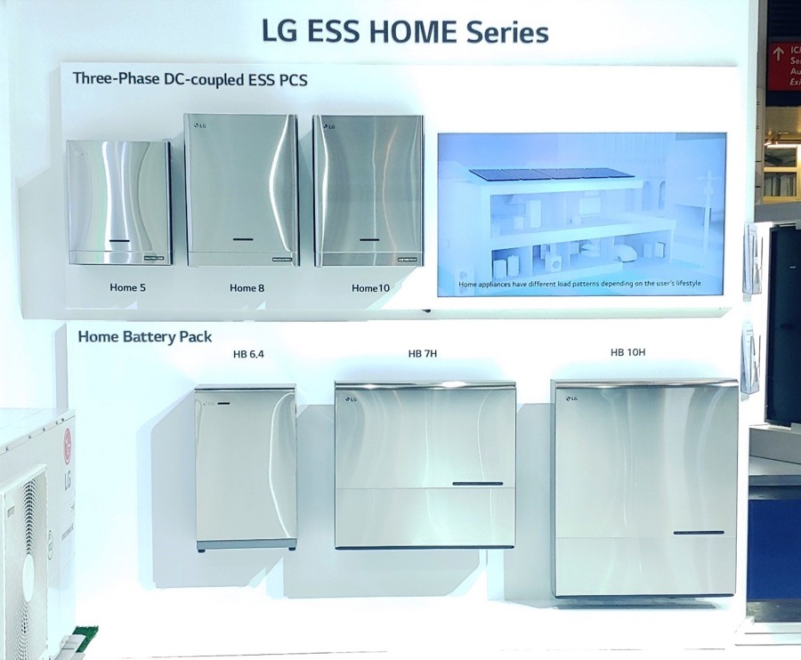 Μαζί με τα νέα ηλιακά πάνελ, τα νέα συστήματα αποθήκευσης ενέργειας Home 8 και Home 10 της LG παρουσιάστηκαν παράλληλα με το υπάρχον ESS Home 5. Το ESS με DC της LG αποθηκεύει ηλεκτρική ενέργεια πιο αποτελεσματικά από τις μονάδες τύπου ESS τύπου AC αυξάνοντας την αποτελεσματικότητα. Το ESS είναι εξοπλισμένο με trackers 3 MPP τα οποία παράγουν τριφασικό εναλλασσόμενο ρεύμα, ώστε να μην δημιουργούνται μη ισορροπημένα φορτία. Υπάρχει επίσης ένας προαιρετικός διακόπτης ο οποίος μπορεί να εγκατασταθεί για να διασφαλίσει ότι το σύστημα αποθήκευσης μπορεί να διατηρήσει την τροφοδοσία του ακόμη και σε περίπτωση διακοπής ρεύματος. Η ηλιακή ενέργεια μπορεί επίσης να αποθηκευτεί σε μπαταρίες των 7, 9,8, 14, 16,8 ή 19,6 kWh, οι οποίες καλύπτονται όλες από την 10ετή εγγύηση του συστήματος.