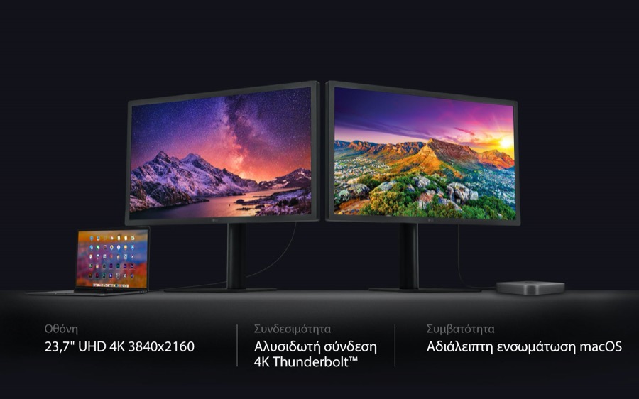 Η LG Electronics (LG) παρουσιάζει το UltraFine 4K monitor 24MD4KL-B που αποτελεί την ιδανική λύση για τους κατόχους Mac υπολογιστών που αναζητούν μια συμβατή εξωτερική οθόνη. Το νέο μοντέλο της LG με τα 8 εκατομμύρια pixels και άνω, προσφέρει εκπληκτική UHD ανάλυση και ισχυρή απόδοση από όλες τις απόψεις, καθώς και τις πιο πρόσφατες επιλογές συνδεσιμότητας.
