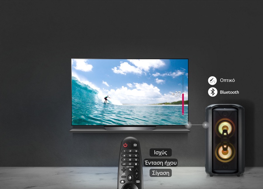 Οι δυνατότητες του XBOOM RK7 ενισχύονται με το TV Sound Sync, όπου ο χρήστης μπορεί να παρακολουθήσει τις αγαπημένες του τηλεοπτικές σειρές, ταινίες και αθλητικά απολαμβάνοντας πανίσχυρο και ισορροπημένο ήχο, μέσω της ασύρματης σύνδεσης του ηχείου σε μια συμβατή LG τηλεόραση.