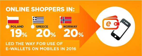 Οι συμπεριφορές φαίνεται ότι ποικίλουν επίσης και στις μεθόδους πληρωμής που επιλέγονται για τις online αγορές. Στις Τσεχία, Γερμανία, Ολλανδία και Πολωνία, οι πληρωμές μέσω online banking υπερτερούν σε διπλάσιο βαθμό, σε σύγκριση με αυτές μέσω καρτών. Αντίθετα, σε χώρες όπως το Ηνωμένο Βασίλειο, η Γαλλία, η Ισπανία, η Ιρλανδία και η Ιταλία, οι κάρτες παραμένουν μακράν η δημοφιλέστερη μέθοδος πληρωμής. Η έρευνα εστίασε επίσης και σε νέες μεθόδους πληρωμών, όπως τα ηλεκτρονικά πορτοφόλια (e-wallets), οι τραπεζικές εφαρμογές (banking apps) και το QR code scanning, με τα ευρήματα να καταδεικνύουν σημαντική δυνατότητα ανάπτυξης σε αυτούς τους κλάδους. Ενώ υπάρχει μία σαφής πρόθεση ανά την Ευρώπη στη δοκιμή νέων τεχνολογιών, το ενδιαφέρον αυτό δεν αντανακλάται στην πραγματική χρήση. Ενδεικτικά, ενώ οι Ισπανοί online καταναλωτές είναι δυνητικά οι πιο ενθουσιώδεις στη χρήση των e-wallets, είναι αρκετά πίσω από τους Νορβηγούς (20%), τους Έλληνες (20%) και τους Φινλανδούς (19%) στη mobile χρήση της συγκεκριμένης τεχνολογίας.