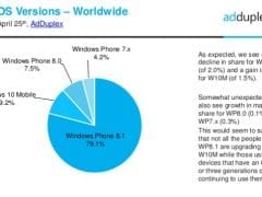 Η ίδια έρευνα αποκαλύπτει ότι η Microsoft κατασκευάζει το 97% του συνόλου των Windows Phone κινητών, ότι το 80% των Windows Phone τρέχει ακόμα την έκδοση 8.1 και ότι το Windows 10 Mobile βρίσκεται σε λιγότερο από το 10% των συσκευών.