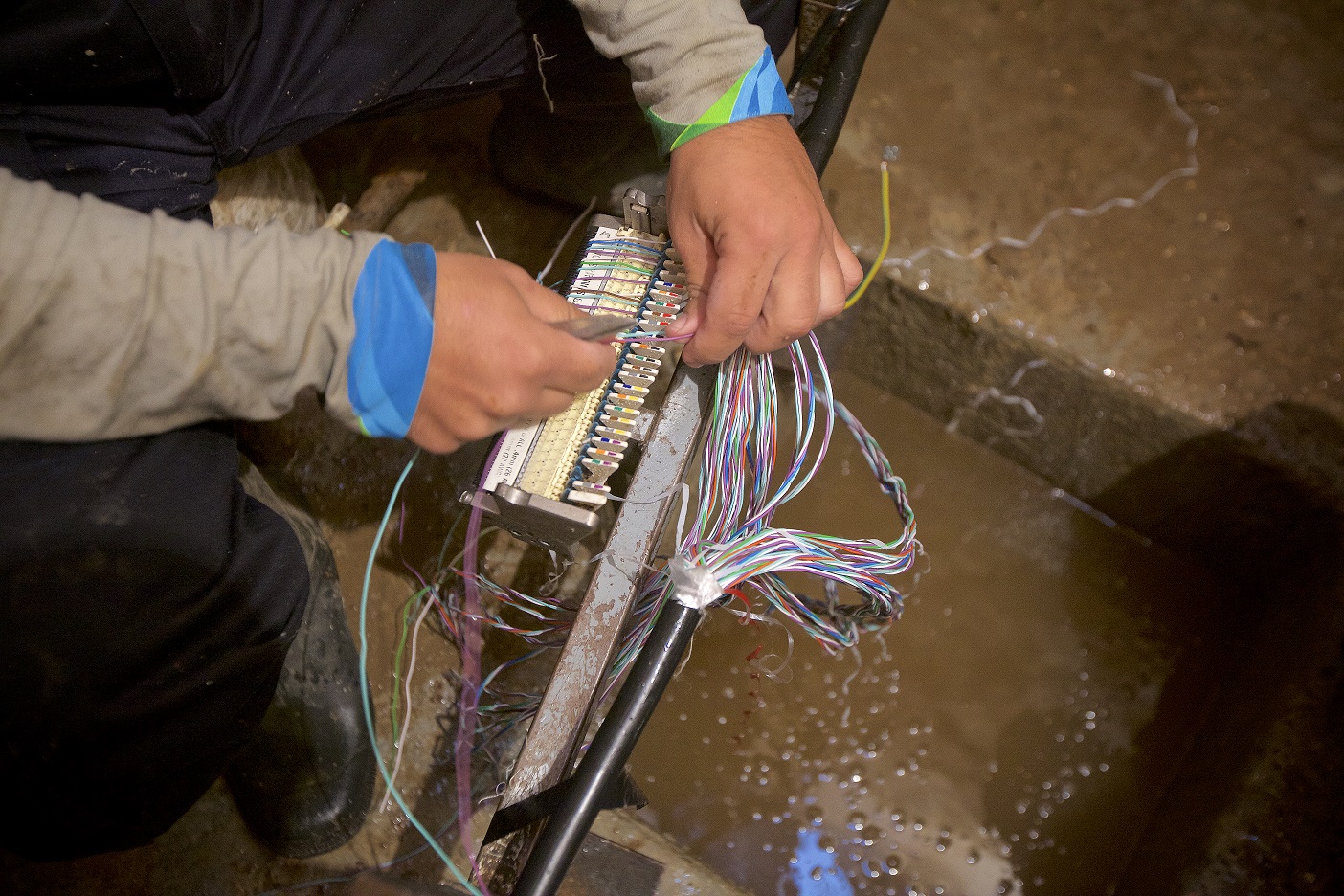 Η διαδικασία επιδιόρθωσης μιας καλωδιακής βλάβης σε πλημμυρισμένο φρεάτιο, το βάθος του οποίου μπορεί να φτάσει έως και 8 μέτρα, είναι από τη φύση της χρονοβόρα. Απαιτείται ειδικός εξοπλισμός και τα κατάλληλα όργανα για να εντοπιστεί το σημείο, όπου έχει περάσει υγρασία στην καλωδίωση. Αν το φρεάτιο είναι σε κεντρικό σημείο (πχ στο μέσο ενός πολυσύχναστου δρόμου) απαιτείται άδεια εργασιών από το αρμόδιο τμήμα της τροχαίας της περιοχής, το οποίο μπορεί να υποδείξει ακόμα και την ώρα των εργασιών. Στη συνέχεια γίνεται άντληση των υδάτων, είτε μέσω της αντλίας που διαθέτει κάθε συνεργείο τεχνικών, είτε από βυτίο, σε περιπτώσεις εκτεταμένης πλημμύρας. Στο σημείο της βλάβης γίνεται νέα μέτρηση, προκειμένου να εντοπιστεί το ακριβές σημείο της. Έπειτα, η καλωδίωση στεγανοποιείται και γίνεται ο απαραίτητος έλεγχος επαναφοράς του δικτύου, που μπορεί να επηρεάσει έως και 2.400 συνδρομητές. «Η δουλειά μας είναι απαιτητική. Τις περισσότερες φορές είναι και βρώμικη, αλλά εμείς πρέπει να την κάνουμε σωστά και στον κατάλληλο χρόνο» αναφέρει ο τεχνικός του Ομίλου ΟΤΕ, ο οποίος σημειώνει πως «το γεγονός ότι ένας πελάτης δε βλέπει κάποιο συνάδελφο να δουλεύει, αυτό δε σημαίνει ότι δεν γίνονται ενέργειες επιδιόρθωσης, αφού η βλάβη που επηρεάζει τη γειτονιά του μπορεί να έχει εκδηλωθεί ακόμα και 4-5 δρόμους μακριά».