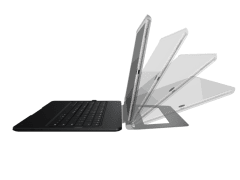 Επίσης το πληκτρολόγιο έχει μεταλλική βάση στήριξης και λόγω του λεπτού του προφίλ μπορεί να χρησιμοποιηθεί και σαν θήκη.