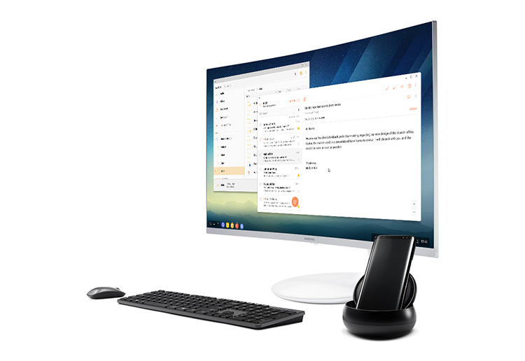 Το χαρακτηριστικό αυτό ονομάζεται “Samsung Desktop Experience”, ή πιο απλά “DeX”, και είναι παρόμοιο με το χαρακτηριστικό Continuum των Windows Mobile. Δηλαδή ο χρήστης ακουμπάει το κινητό σε μια βάση, έπειτα συνδέει monitor, ποντίκι και πληκτρολόγιο και μπορεί να χρησιμοποιήσει τις εφαρμογές που έχει εγκατεστημένες στο κινητό στη “μεγάλη οθόνη.”