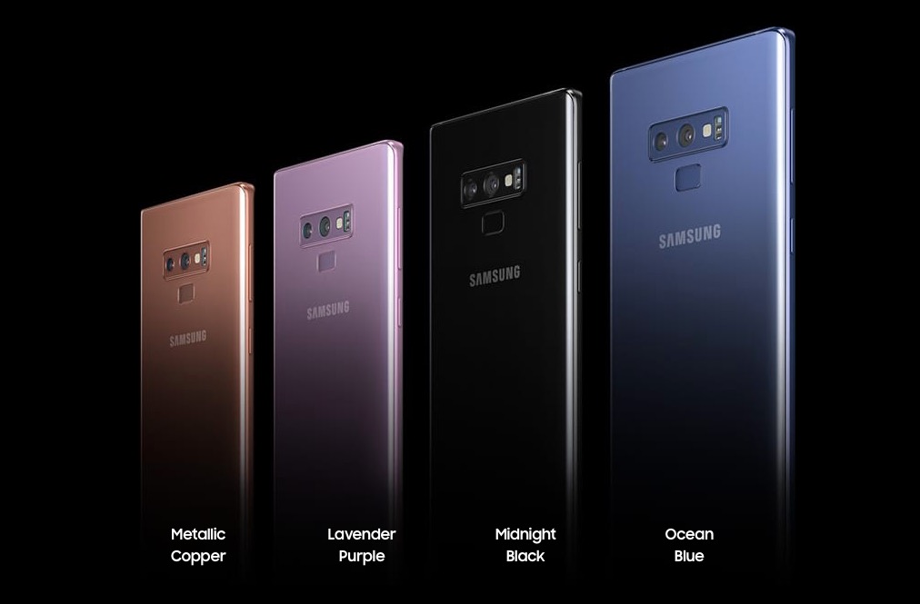 Το Galaxy Note9 θα είναι διαθέσιμο από τις 24 Αυγούστου 2018 σε επιλεγμένες αγορές στα χρώματα Midnight Black, Lavender Purple και Metallic Copper με ίδιας απόχρωσης S Pen, ή σε Ocean Blue απόχρωση με ένα S Pen απόχρωσης Yellow. Στην ελληνική αγορά το Galaxy Note9 θα είναι διαθέσιμο σε Midnight Black, Lavender Purple και Ocean Blue.