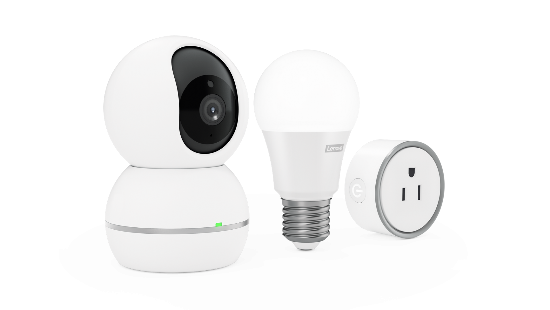 ● Lenovo Smart Plug – μια μικρή, απλή στη χρήση συσκευή που μπορεί να συνδεθεί σε κάθε πρίζα, επιτρέποντας στους χρήστες να ελέγχουν οποιαδήποτε συμβατή συνδεδεμένη συσκευή