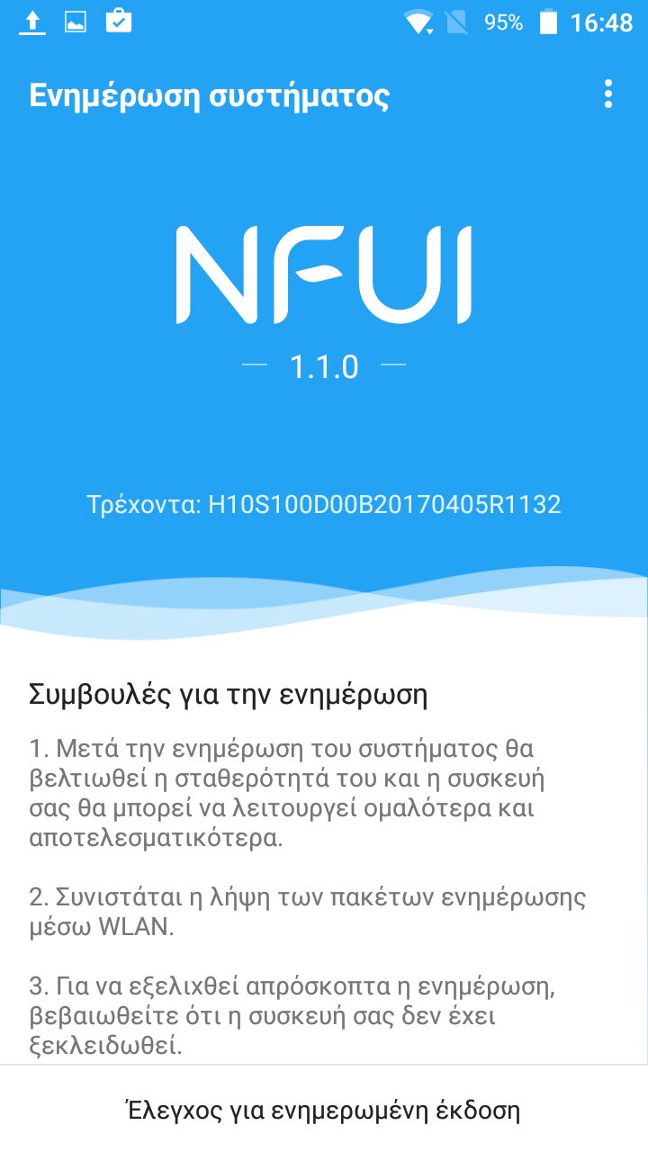 Μόλις ενεργοποίησα το κινητό και το σύνδεσα στο WiFi δίκτυο αμέσως έβγαλε ειδοποίηση για διαθέσιμη ενημέρωση λογισμικού. Στη περιγραφή έγραφε ότι δεκάδες πράγματα έχουν βελτιωθεί και αυτό είναι σίγουρα ένα ακόμα “συν” για το κινητό. Δυστυχώς, όμως, δεν έρχεται με το Android 7.0 Nougat, αλλά οι Κινέζοι έχουν υποσχεθεί ότι θα το λάβει με μελλοντική αναβάθμιση.