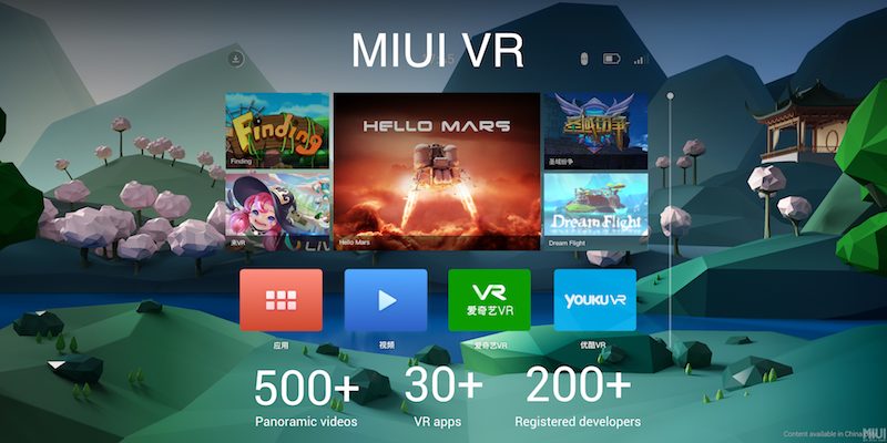 Η Xiaomi ανακοίνωσε το Xiaomi Mi VR, το δεύτερό της κράνος εικονικής πραγματικότητας μετά το Mi VR Play. Έχει σχεδιαστεί για να δουλεύει με τα Mi Note 2, Mi 5s, Mi 5s Plus και Mi 5, και έρχεται με ένα ασύρματο χειριστήριο. Διαθέτει ακόμη έναν αισθητήρα κίνησης 9 αξόνων με καθυστέρηση 16ms και ένα trackpad. Έχει σχεδιαστεί για την κινέζικη αγορά και για αυτό ενσωματώνει κινέζικες υπηρεσίες, καθώς επίσης περισσότερες από 30 εφαρμογές εικονικής πραγματικότητας και πάνω από 500 πανοραμικά βίντεο. Θα κυκλοφορήσει με κόστος RMB 199, δηλαδή περίπου €26.